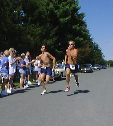 (L-R) Stephen Hiser(8) out sprints Derek Clark(9) to the finish